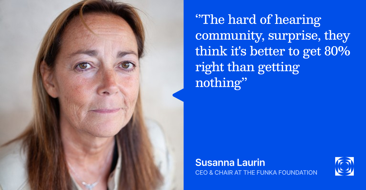 She points to the Nordic experience with auto-captions. People who don't need captions tend to dismiss them. "Oh, that's horrible. It spelled my name wrong. It's absolutely crap." But the hard of hearing community sees it differently: "They think it's better to get 80% right than getting nothing."